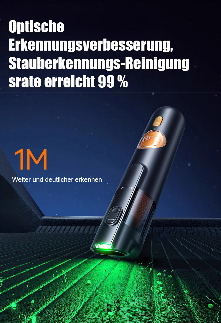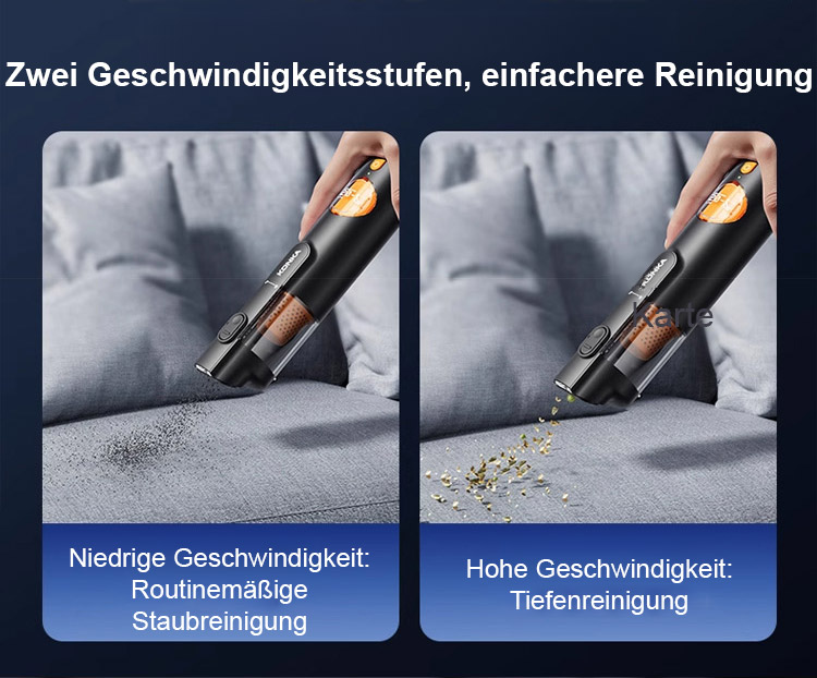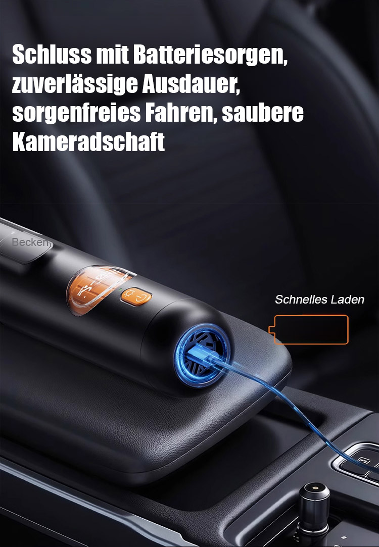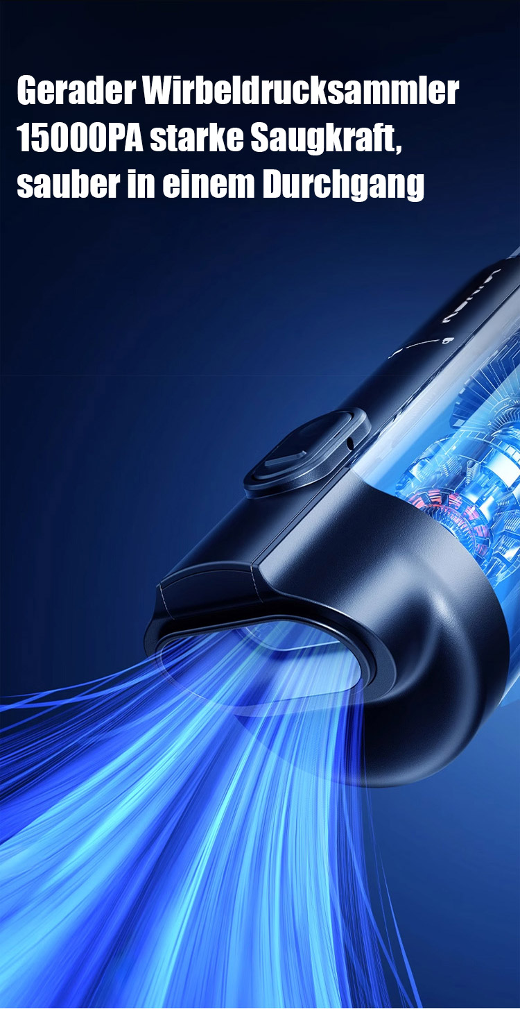 ⏰Ausgestattet mit einem bürstenlosen Motor aus Europa liefert er eine starke Saugkraft von 15.000 Pa und entfernt mühelos sichtbaren Staub sowie selbst Haare und Feinstaub aus den tiefsten Sitzspalten.