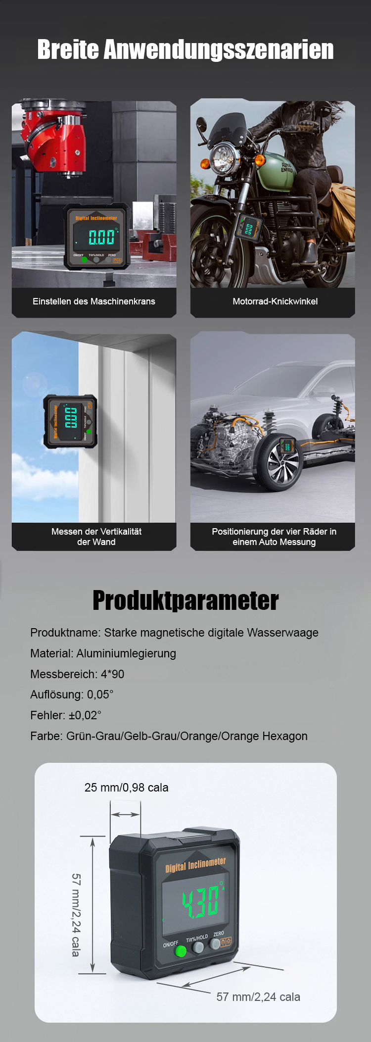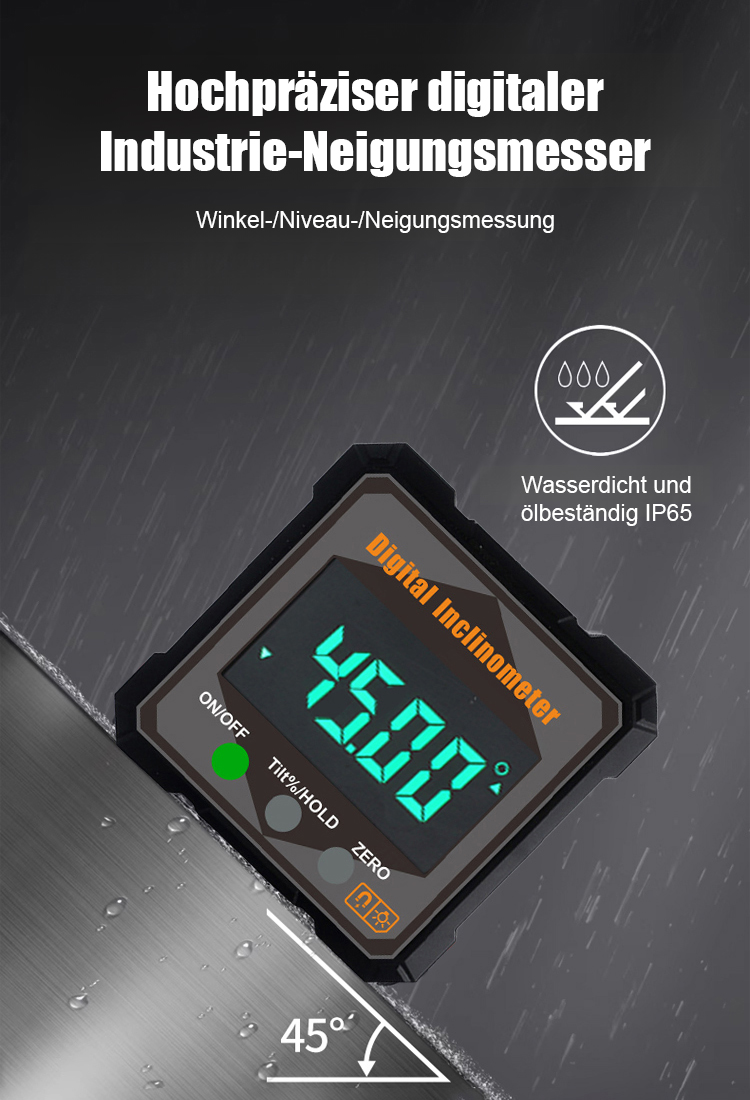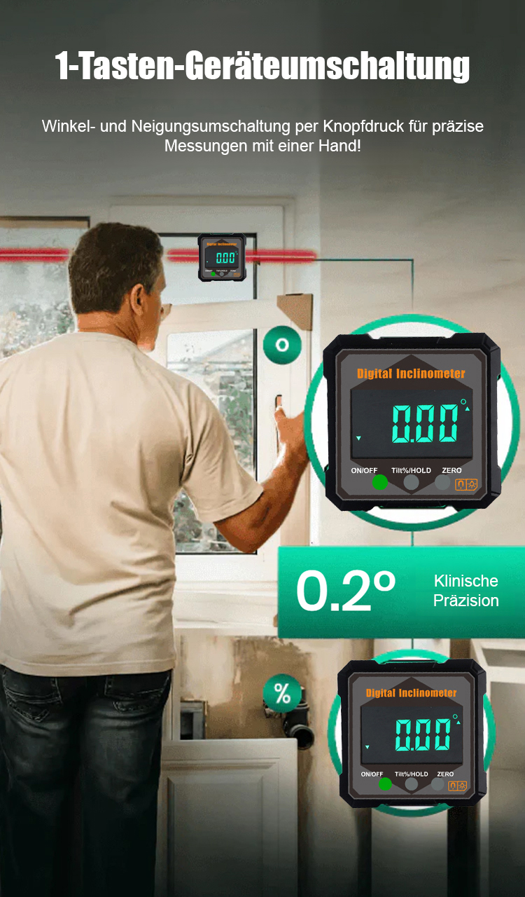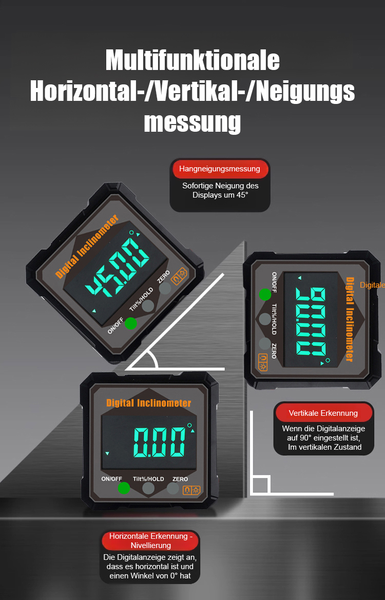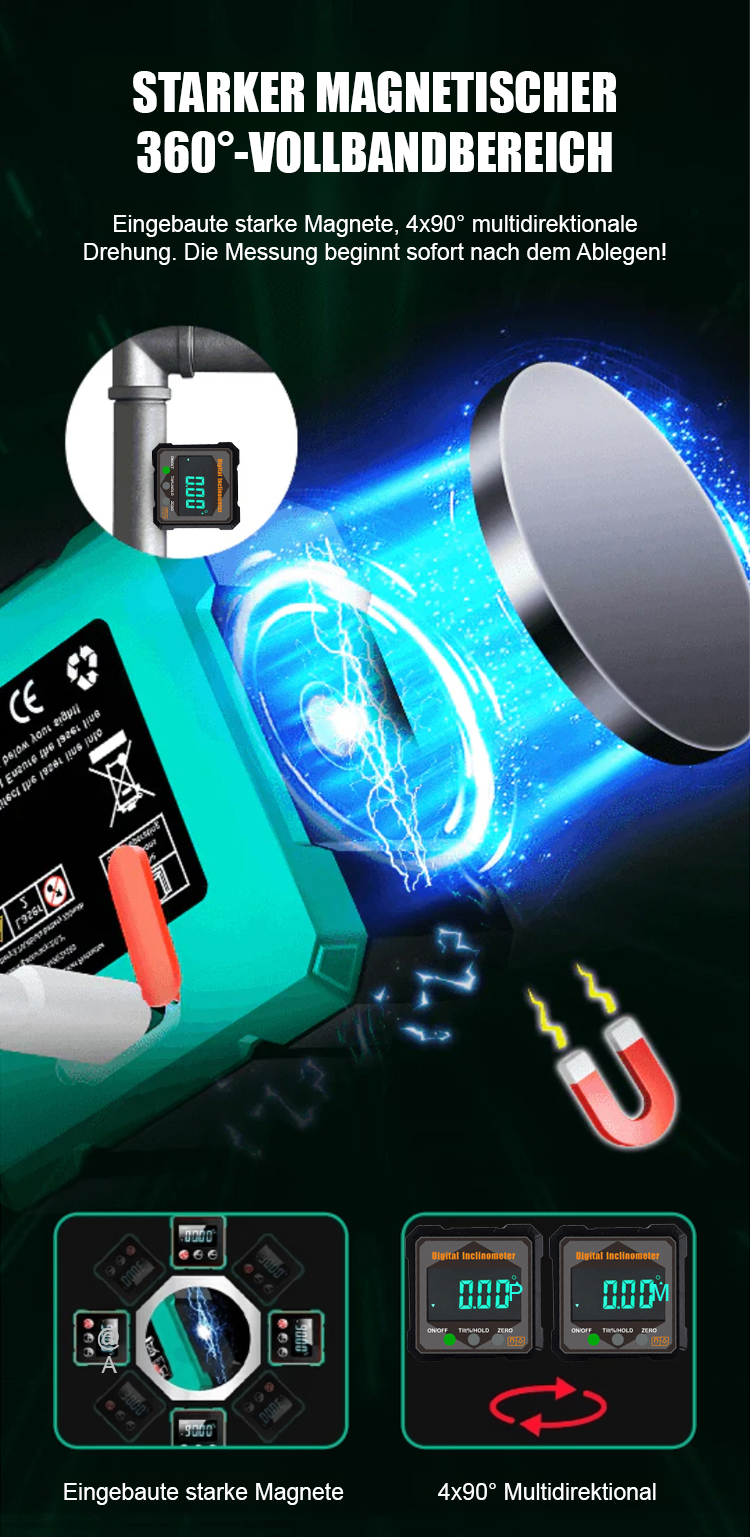 【Schluss mit dem lästigen Maßband!】Stark magnetisches digitales Neigungsmessgerät Winkelmessgerät. Hohe Genauigkeit