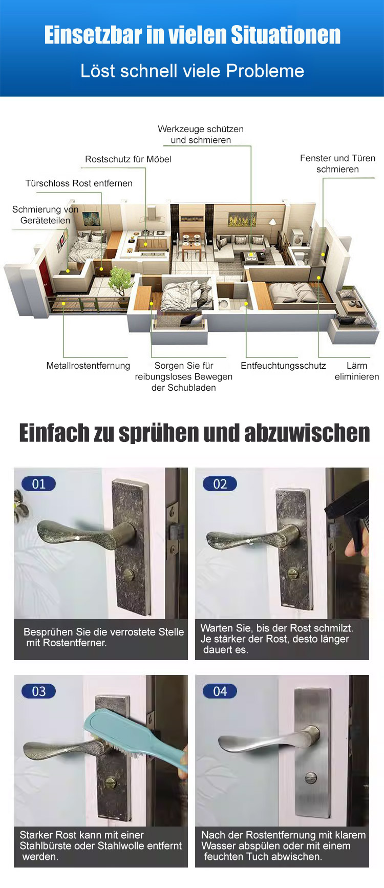 Werfen Sie Ihre rostigen Werkzeuge nicht weg! 🛠️ Einmal sprühen, 30 Sekunden warten – der Rost verschwindet wie Magie.