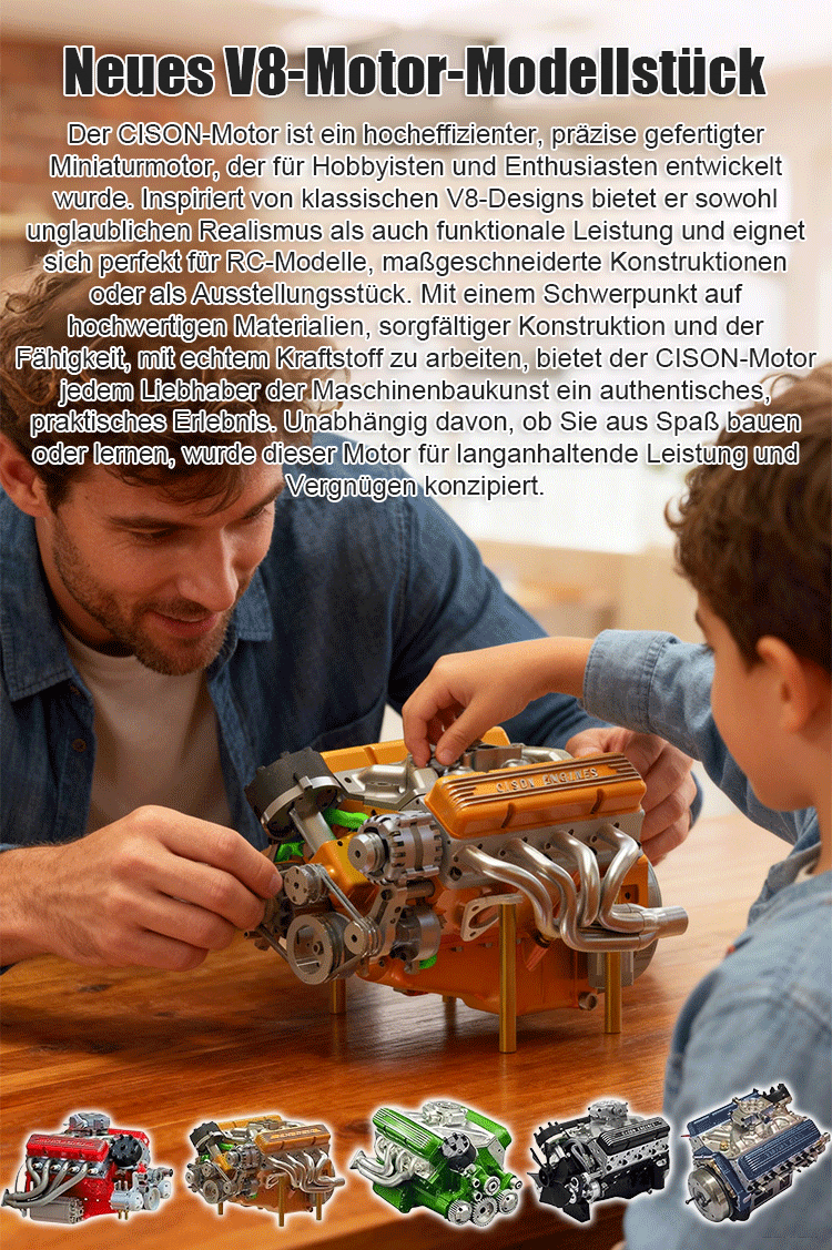 Neues Motormodell: V8-Motor-Dekoration. 🚗 Der Traum eines jeden Ingenieurs. Maßstab 1:16, wassergekühlt und mit unglaublichem V8-Sound. Überzeugen Sie sich selbst!