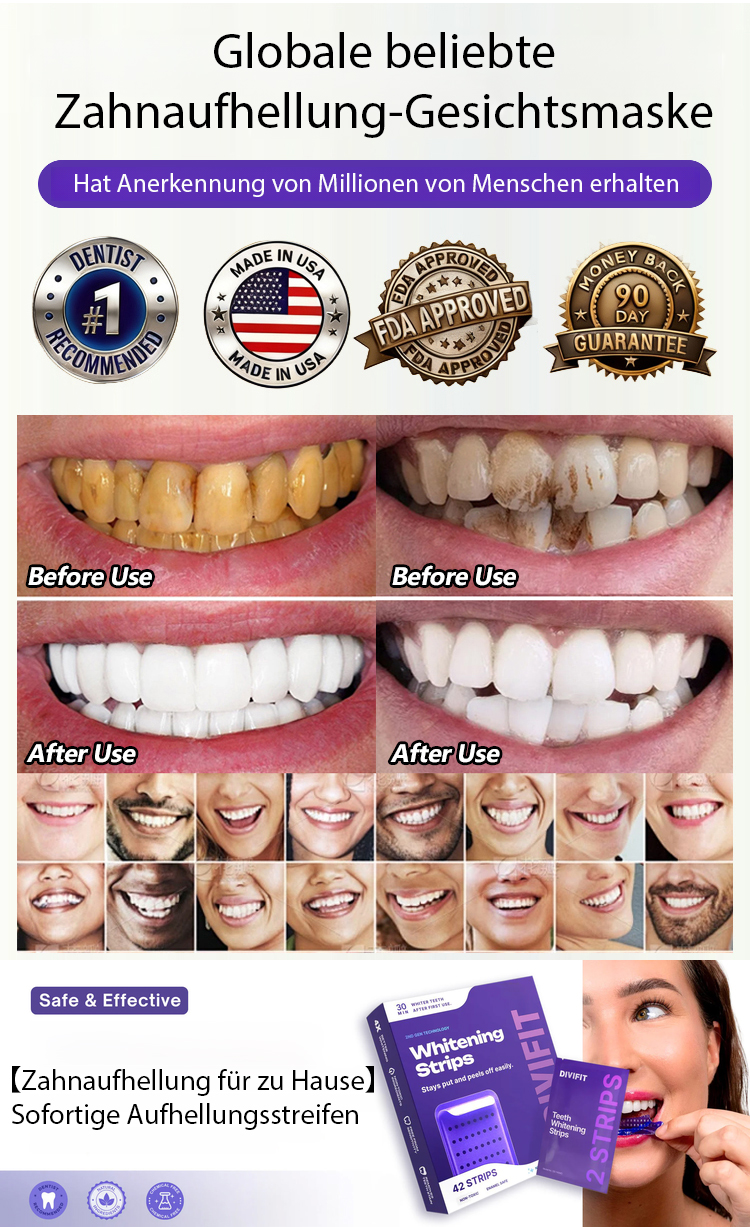 Träumen Sie von einem strahlend weißen Lächeln, ohne teure Zahnarztbesuche?【Zahnaufhellung für zu Hause】Sofortige Aufhellungsstreifen